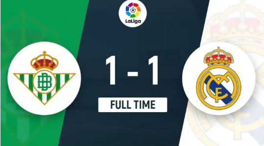 全场比赛结束,皇马1-1贝蒂斯。